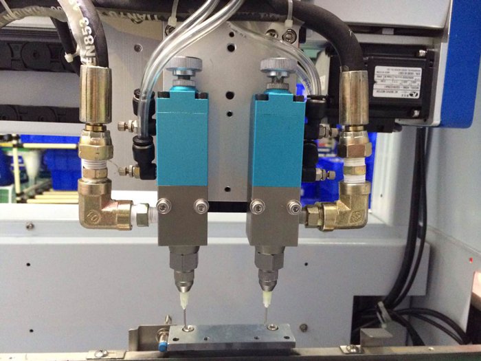 通过高精度传送定位系统配合机械手高速精准定位点胶/涂油流体控制工艺实现在线点胶(单液/混合),在线涂油,适用于玩具、电子、LCD/LED模组、通讯设备、电器、齿轮箱、汽车配件等等。本工艺采用柔性智能生产技术模块化设计,产品应变能力大,较低成本和高效运转,满足市场的多元化需求。